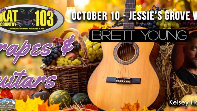 TICKETS ON SALE NOW! Welcome y'all to the KAT Country 103's GRAPES & GUITARS featuring BRETT YOUNG with support from Kristen Brown and Kelsey Hart! BUY YOUR TICKETS HERE! Get ready for a boot-stompin' good time at Jessie's Grove Winery. Grapes & Guitars is sponsored by California Landscape Supply! Join us for ...